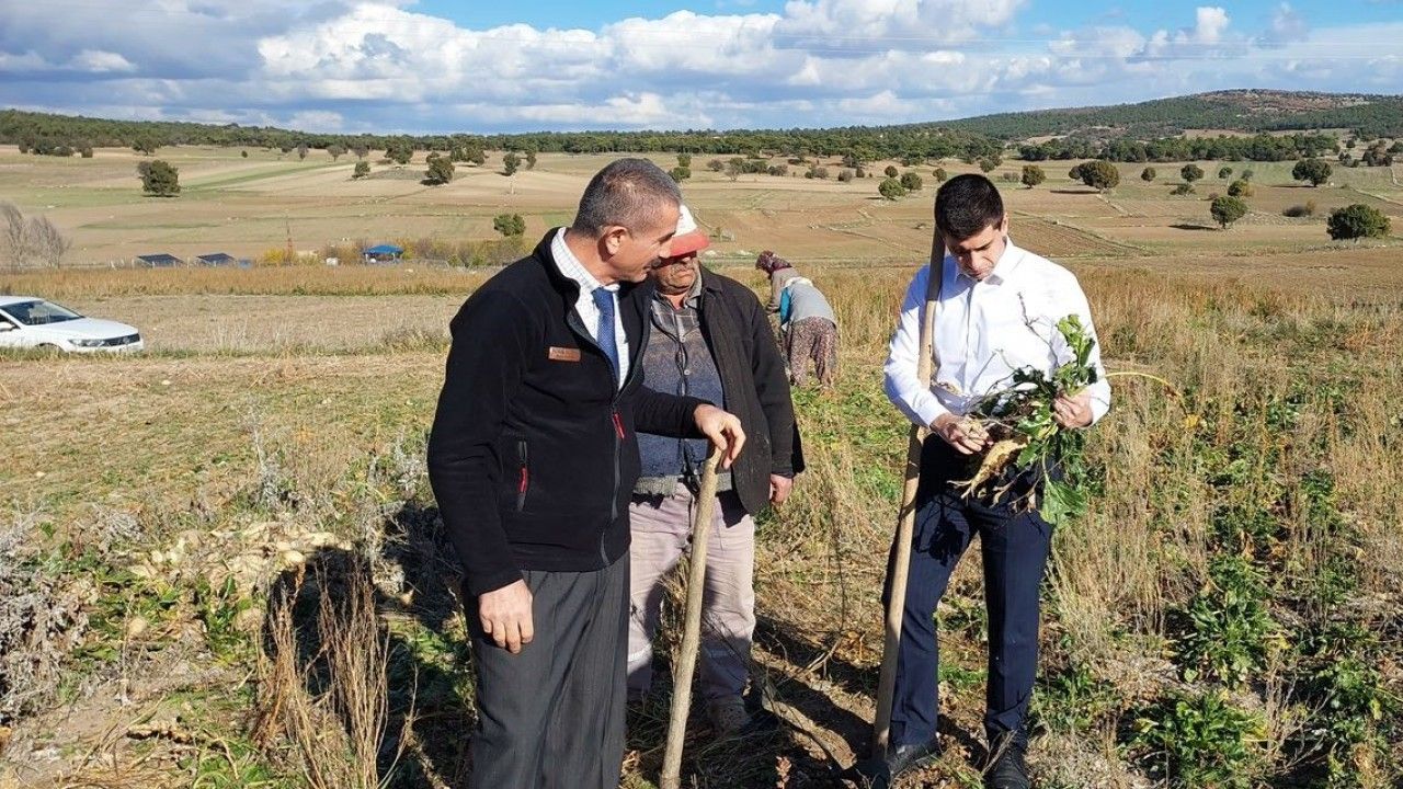 Bölgenin önemli tarımsal faaliyetlerinden biri olan şeker pancarı hasadına katılan Kaymakam Alperen Teltik, İlçe Tarım ve Orman Müdürü Koral Altınpınar ve çiftçilerle bir araya gelerek sohbet etti. Üreticilerden hasat süreci, verim ve ürün kalitesi hakkında detaylı bilgiler aldı.