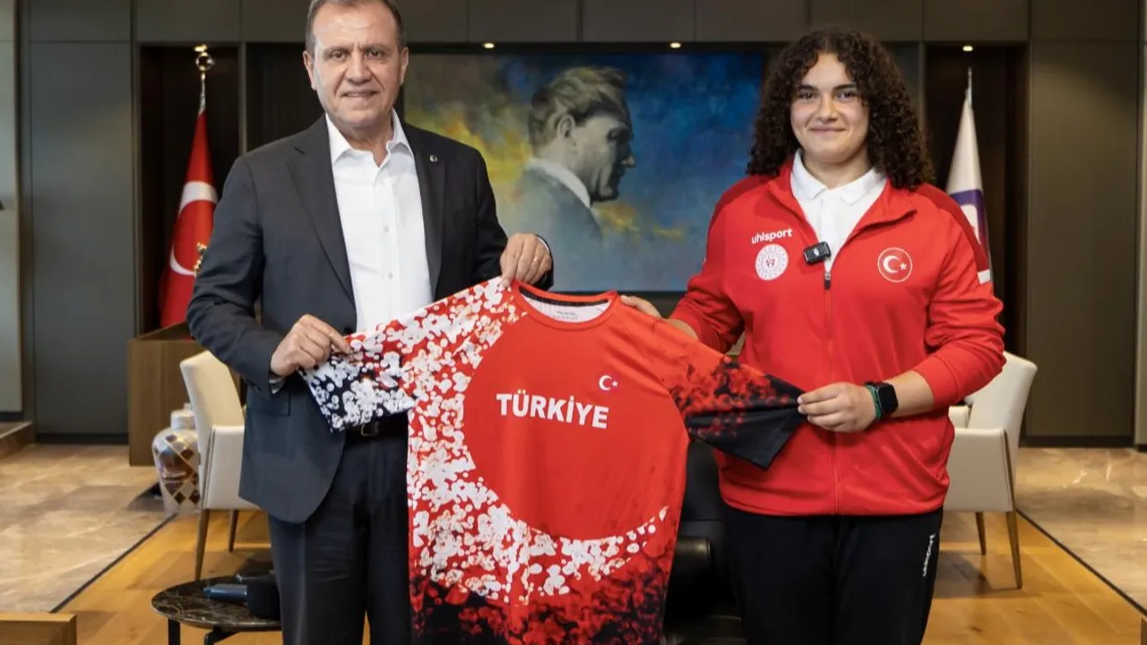 Kır Çiçeği Nidanur, Sırbistan’da düzenlenen Liselerarası Dünya Şampiyonası’nda giymiş olduğu formayı, “En büyük destek sizindi” diyerek Seçer’e takdim etti.