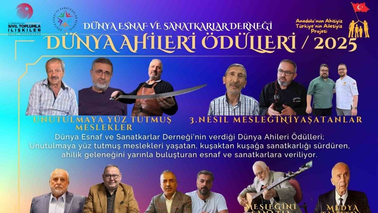 Dünya Esnaf ve Sanatkarlar Derneği-Ahi Enstitüsü tarafından geleneksel hale getirilen Dünya Ahileri Ödülleri sahiplerini buldu. 2025 yılında 6 farklı kategoride toplam 12 esnaf ve sanatkara ‘Dünya Ahisi Ödülü’ verildi.