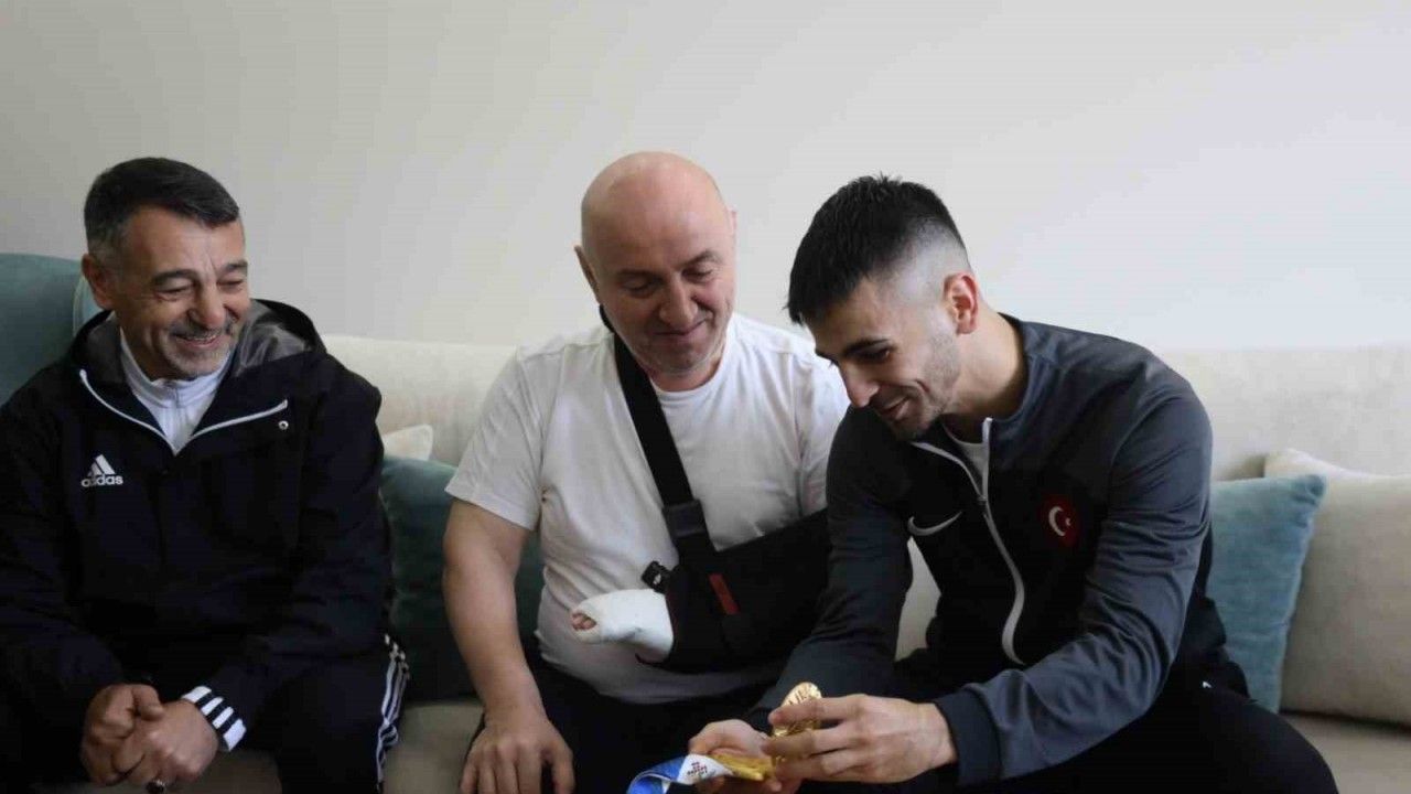 Darıca Belediyesi Eğitim ve Spor Kulübü sporcusu Eray Şamdan, şampiyona dönüşü, geçirdiği operasyon nedeniyle evinde istirahat eden Belediye Başkanı Muzaffer Bıyık’ı ziyaret etti.