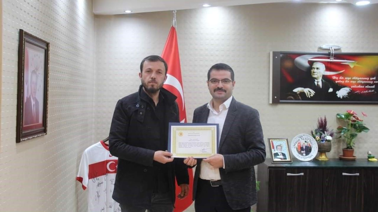 Afyonkarahisar’ın Şuhut ilçesinde köylerdeki ilkokullarda eğitim gören öğrencilerin ücretsiz saç tıraşını gerçekleştiren berbere Kaymakam Harun Reşit Han tarafından Teşekkür Belgesi takdim edildi.