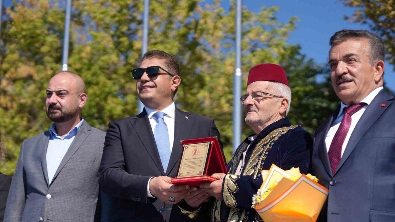 Ardından Anıtpark’ta ki törene geçildi. Konuşmalar ve gösterilerin ardından Düzce Esnaf ve Sanatkarlar Odaları Birliğince "Yılın Ahisi" seçilen emektar esnaf, alın teriyle beslediği emeği ve emeğin yüceliğine dair yaklaşımıyla örnek olan seyyar satıcılık yapan 76 yaşındaki İsmail Hakkı Geçgel’e Düzce Valisi Selçuk Aslan tarafından kaftan giydirildi.