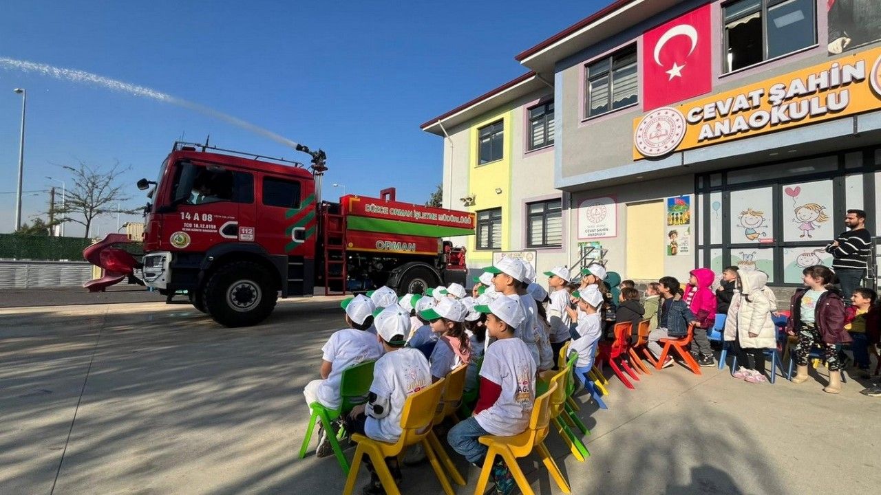 Gelecek nesillerin çevre bilinci ile yetişmesi ve daha yeşil bir Türkiye için Cumhurbaşkanı Recep Tayyip Erdoğan tarafından başlatılan "Yeşil Vatan Seferberliği" kapsamında Düzce Cevat Şahin Anaokulu 4-6 yaş grubu öğrencileri ile Düzce Orman İşletme Müdürlüğü yangın ekibi bir araya geldi.