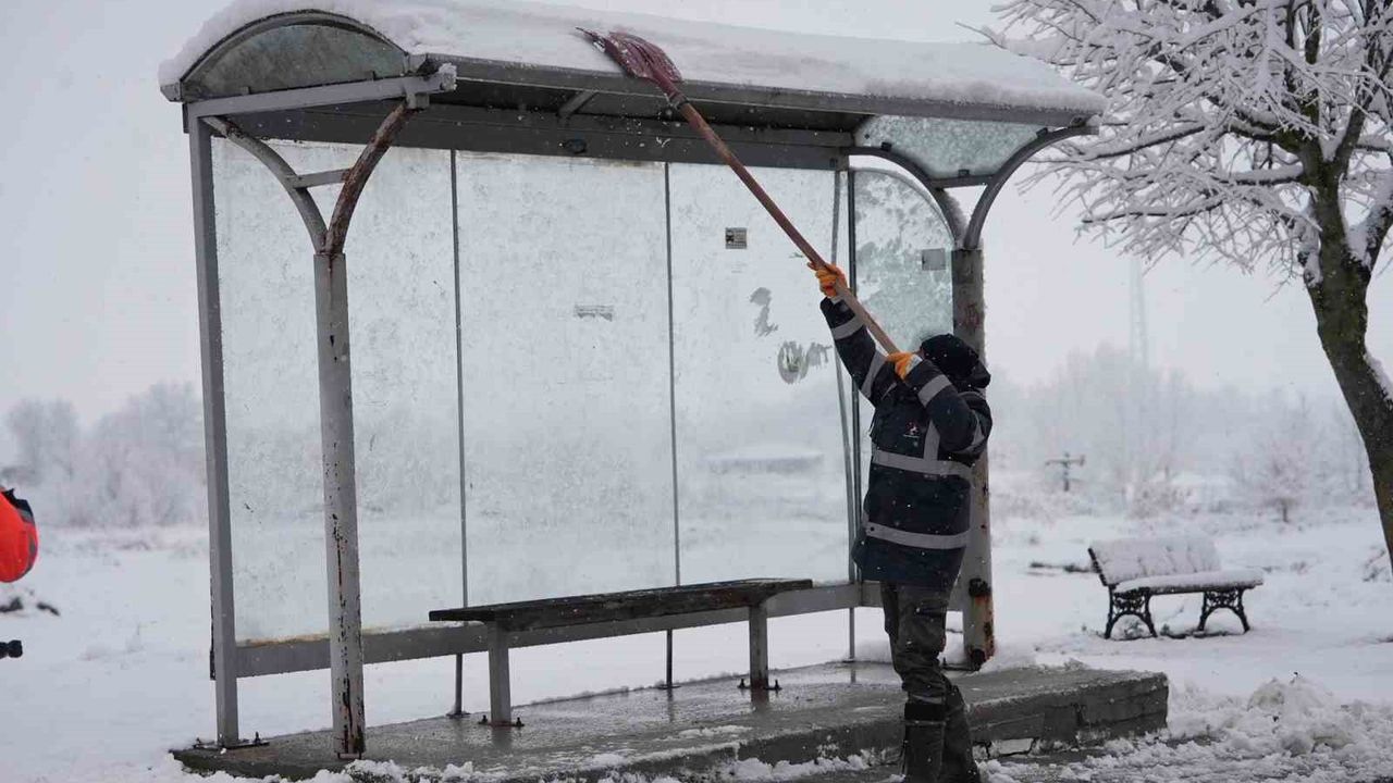 DÜZCE (İHA) - Düzce Belediyesi, etkili olan kar yağışına karşı kent genelinde karla mücadele çalışmalarını aralıksız sürdürüyor. Bu kapsamda belediye bünyesinde oluşturulan kar timleri, özellikle yaya kaldırımları ve otobüs duraklarında temizlik çalışmalarını yoğunlaştırdı.