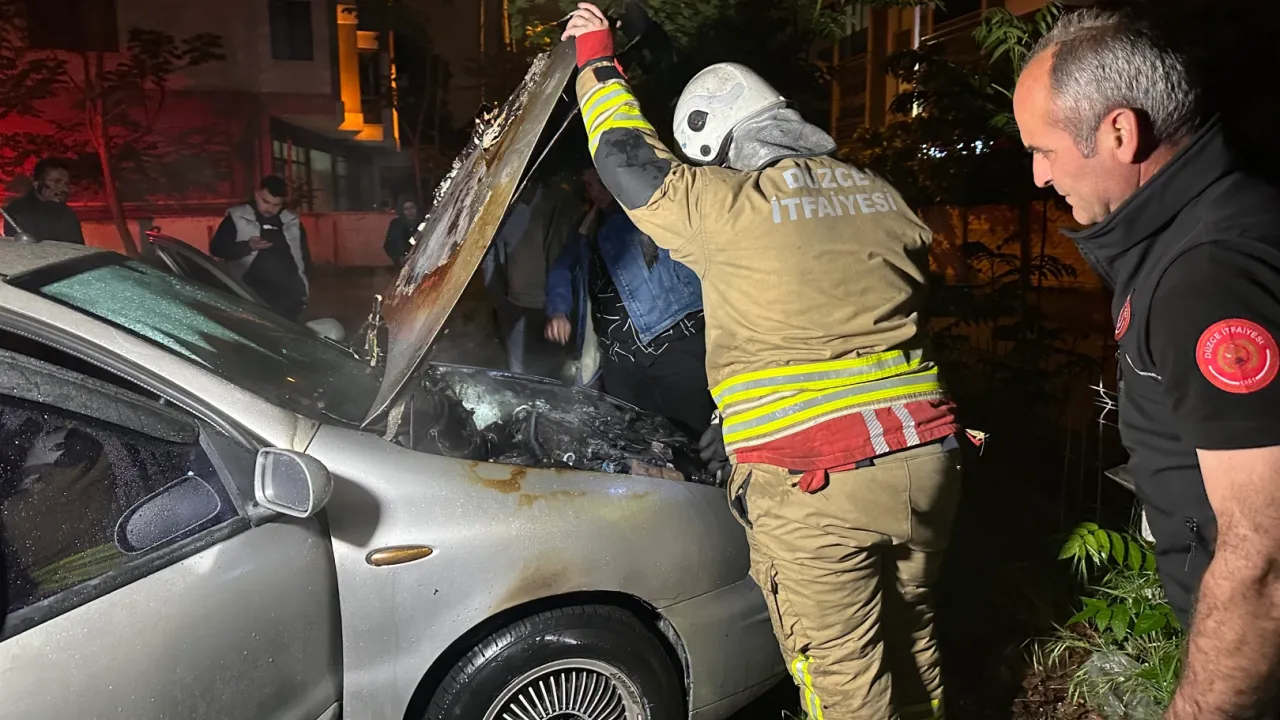 Düzce’de park halindeki bir otomobilde yangın çıktı, itfaiyenin erken müdahalesiyle alevler söndürüldü.Sefer DEMİR / DÜZCE (İGFA) - Düzce’nin Kültür Mahallesi Mansur Bayram Caddesi’ndeki bir otoparkta, 14 ABD 064 plakalı otomobilde bilinmeyen bir nedenle yangın çıktı.