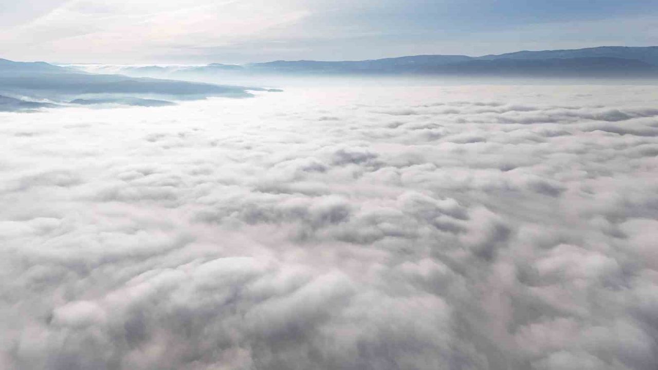 Kentin üzerini kaplayan yoğun sis tabakası, dron ile havadan görüntülendi. Kaydedilen görüntülerde, binaların ve şehir silüetinin zaman zaman sis içinde kaybolduğu görüldü.