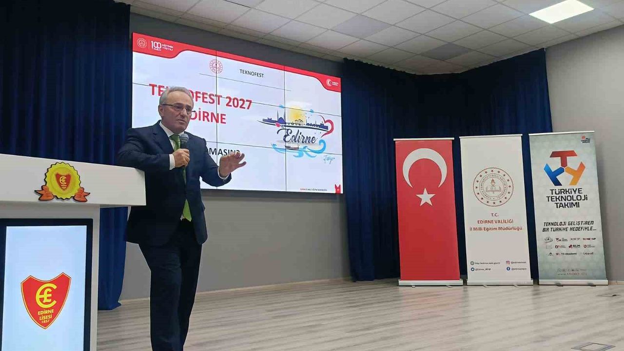Edirne'de İl Millî Eğitim Müdürlüğü koordinesinde öğrencilere TEKNOFEST'in sunduğu imkân ile fırsatları tanıtmak amacıyla tanıtım programı düzenlendi.
