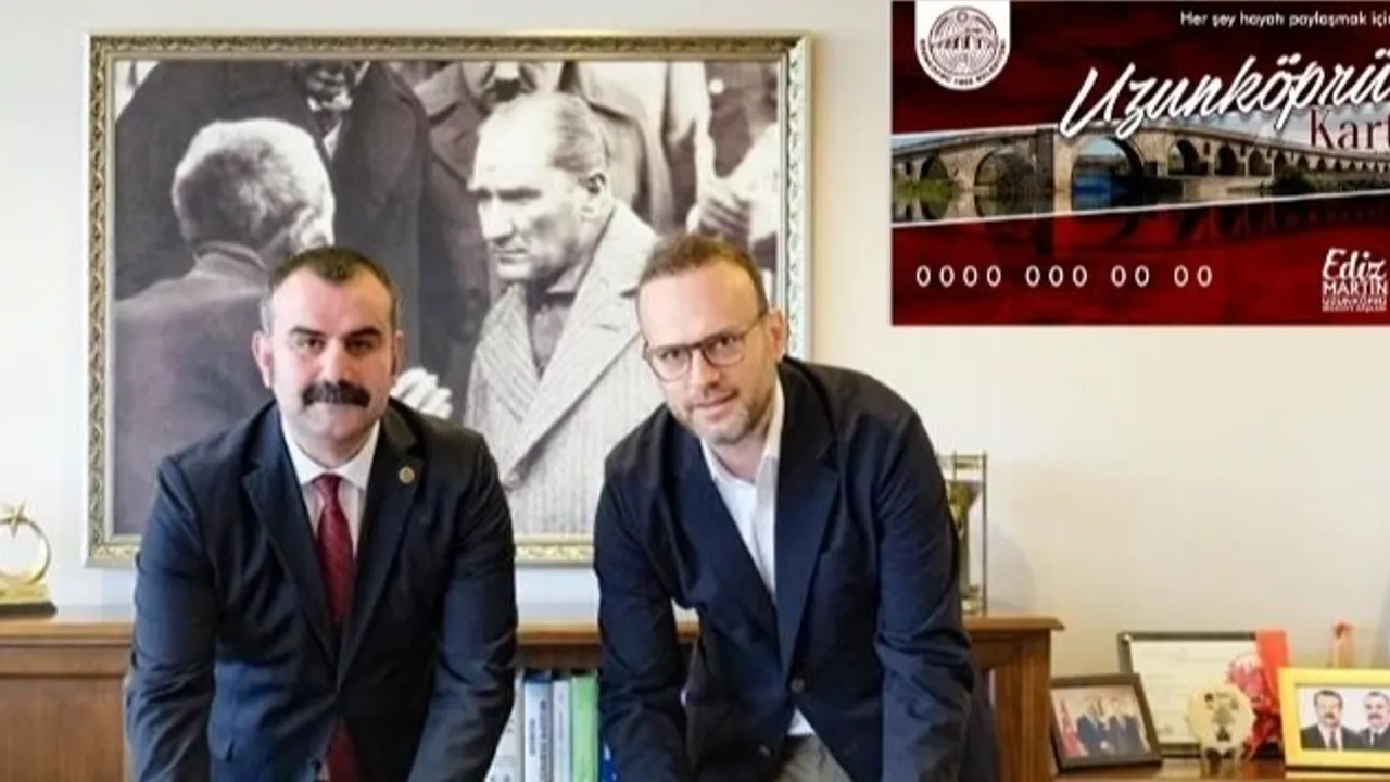 Edirne'ye bağlı Uzunköprü Belediye Başkanı Ediz Martin, ihtiyaç sahiplerine yönelik geliştirilen Uzunköprü Kart projesi kapsamında firma yetkilileriyle protokol imzaladı. Kart, hem vatandaşlara destek sağlayacak hem de yerel esnafı güçlendirecek.Erdoğan DEMİR / EDİRNE (İGFA) - Edirne'de Uzunköprü Belediye Başkanı Ediz Martin, sosyal belediyecilik anlayışı çerçevesinde hayata geçirilecek olan Uzunköprü Kart uygulamasını kamuoyuyla paylaştı. Belediye ile firma yetkilileri arasında anlaşma sağlanarak projenin protokolü imzalandı.