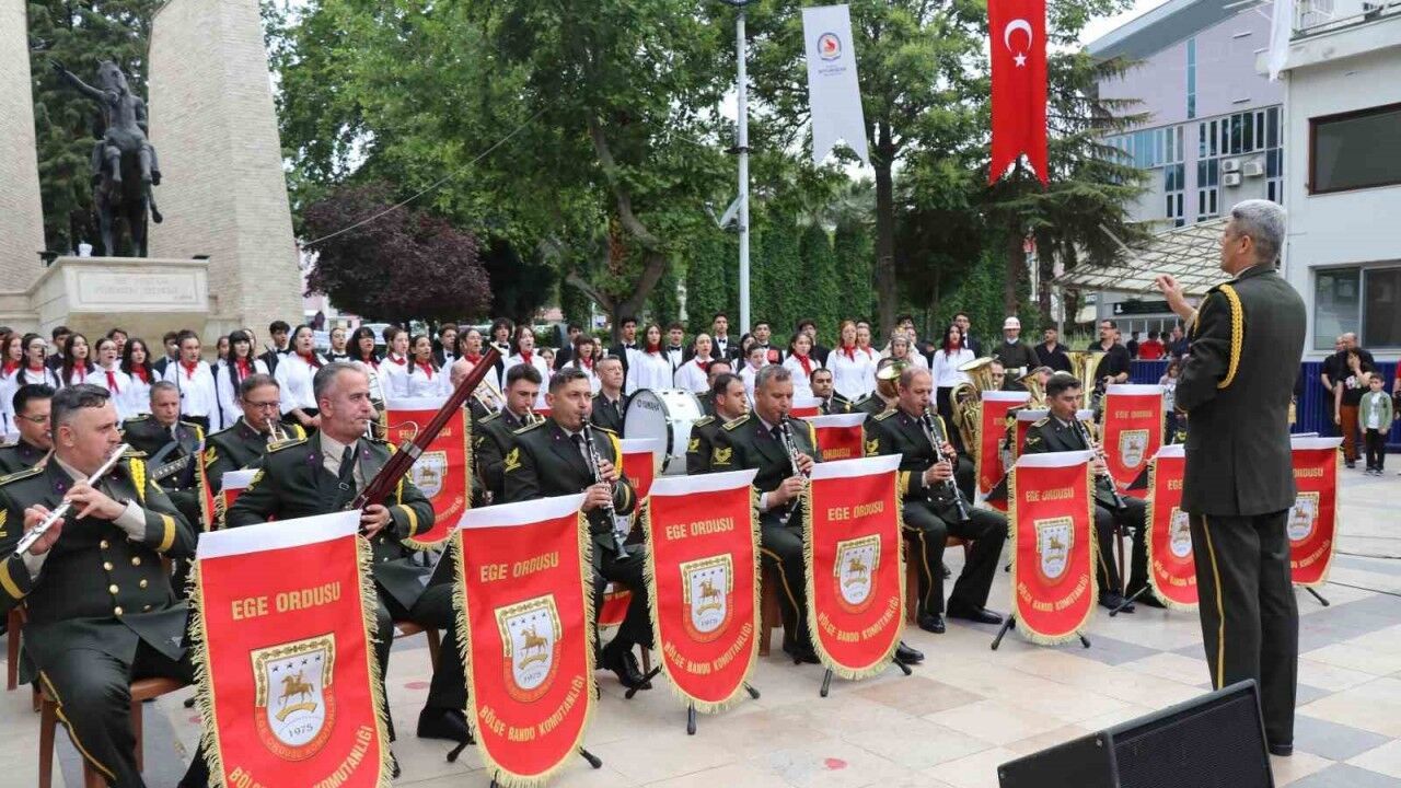 Ege Ordusu Bölge Bando Komutanlığı, 19 Mayıs Atatürk’ü Anma, Gençlik ve Spor Bayramı kapsamında Denizlili 80 öğrenci ile birlikte kent meydanında konser verdi.