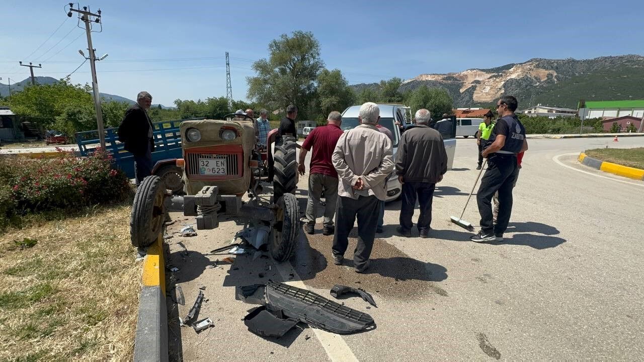 Isparta’nın Eğirdir ilçesinde otomobil ile traktörün çarpışması sonucu meydana gelen kazada 3 kişi yaralandı.