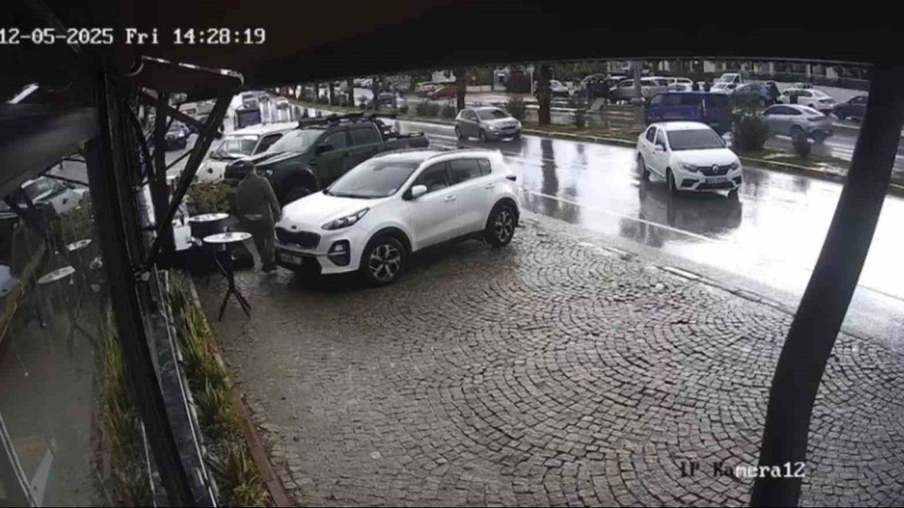 Edinilen bilgiye göre, Konacık Atatürk Bulvarı’nda faaliyet gösteren unlu mamuller işletmesine gelen sürücü, aracını işletme önüne park etti. El freni çekilmeyen otomobil, geri geri giderek Atatürk Bulvarı’na girdi. O sırada bulvarda Turgutreis yönüne giden otomobilin sürücüsü, geri geri gelen aracı fark edip yavaşladı. El freni çekilmeyen otomobil, karayolundaki otomobile hafif şekilde çarptı. Yaşananlar ise güvenlik kamerasına yansıdı.