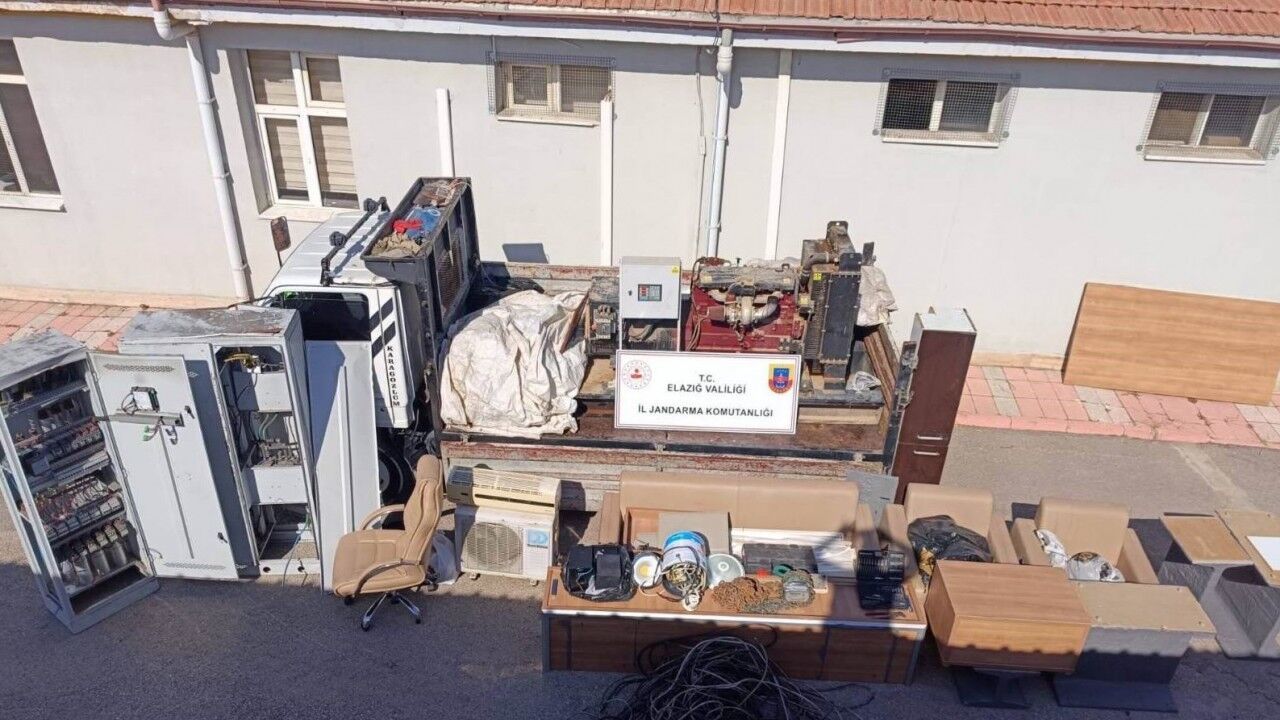 Önceki gün Elazığ merkez Hankendi köyü sınırları içerisinde bulunan çiftlikte hırsızlık olayı ihbarı alındı. Olayın aydınlatılması amacıyla Jandarma Dedektifleri (JASAT) ve İl Merkez İlçe Jandarma Komutanlığınca yapılan istihbari çalışmalar ve araştırmalar sonucunda hırsızlığı M.K., H.Ü., S.K. ve Ş.D. isimli şüphelilerin gerçekleştirdiği tespit edildi. 4 hırsızlık zanlısı, yapılan operasyonun ardından yakalandı. Şüphelilerin ev ve depolarında yapılan arama sonucunda çalınan malzemeler ele geçirilerek, cumhuriyet savcısının talimatı ile sahibine teslim edildi.