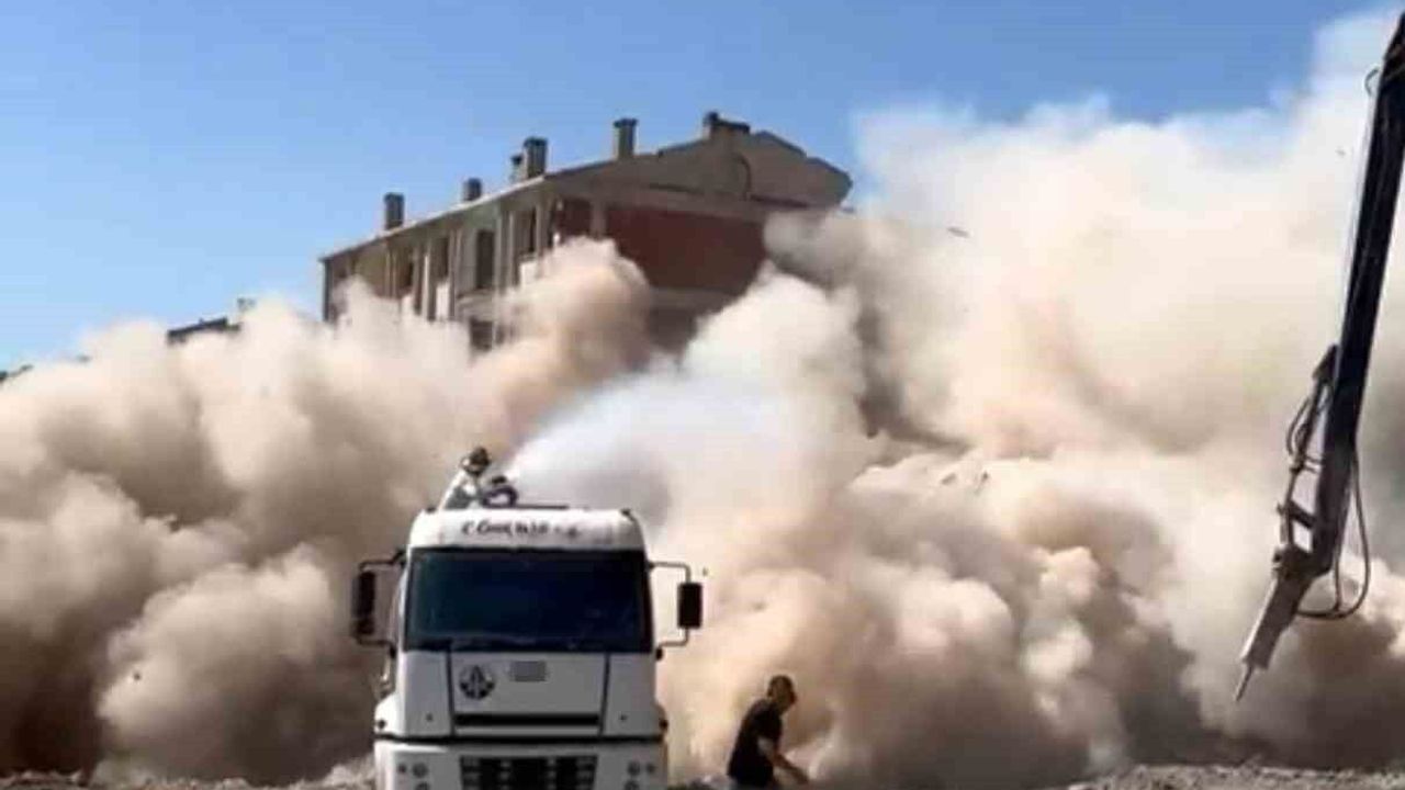 Kahramanmaraş’ta 6 Şubat 2023’te meydana gelen yıkıcı depremlerden etkilenen iller arasından bulunan Elazığ’da ağır hasarlı binaların yıkımı devam ediyor. Bu çerçevede, Abdullahpaşa Mahallesi’nde yıkımına başlanan 5 katlı 10 daireli bina, iş makinesinin makasını vurmasıyla bir anda yerle bir oldu. O anlar ise cep telefonu kamerası ile kaydedildi.