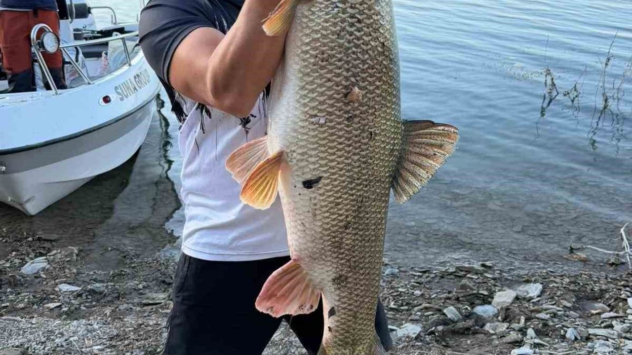 Elazığ’da profesyonel bir balıkçı, Keban Baraj Gölü’nde 70 kiloluk turna balığı yakaladı.