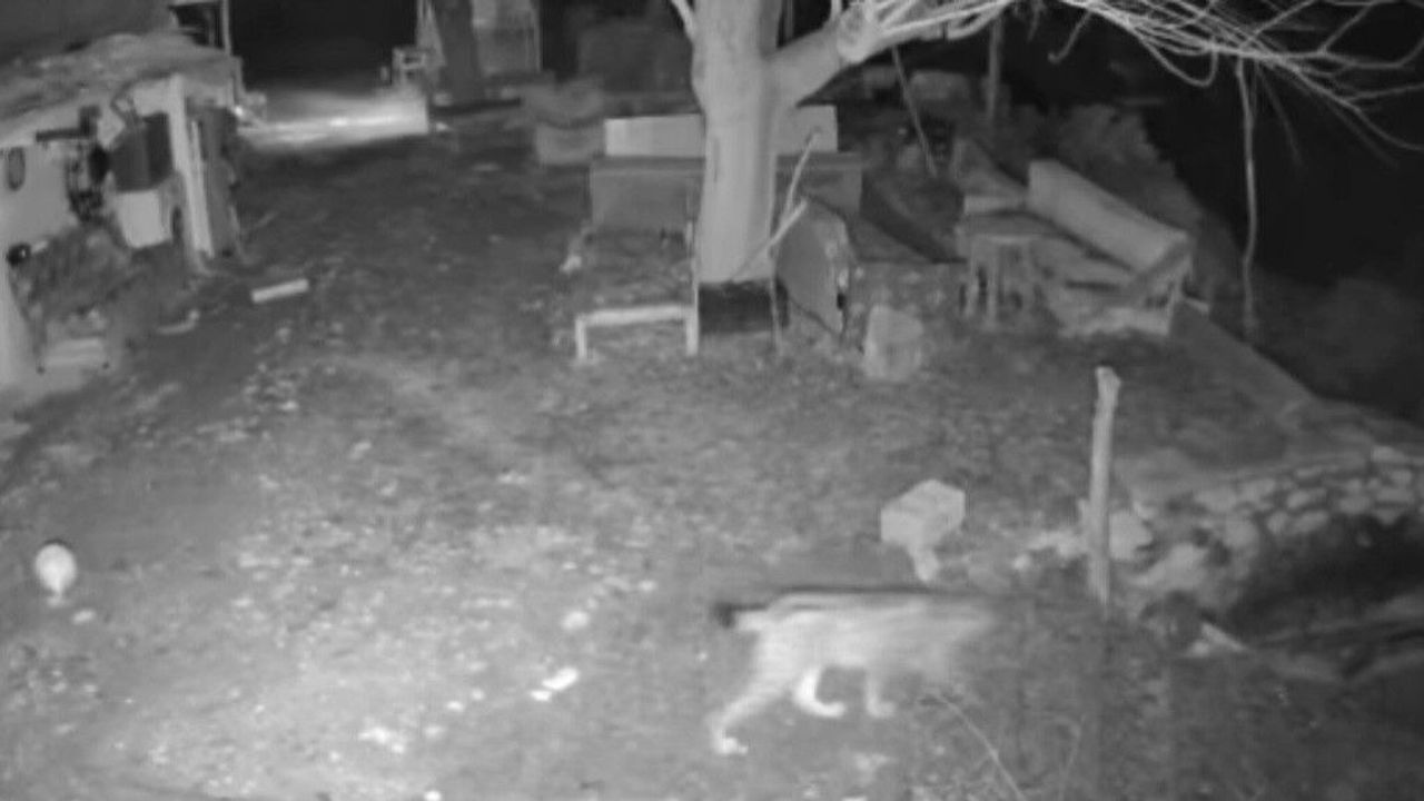 Elazığ'da evin etrafında yiyecek arayan vaşak güvenlik kameraları tarafından görüntülendi.