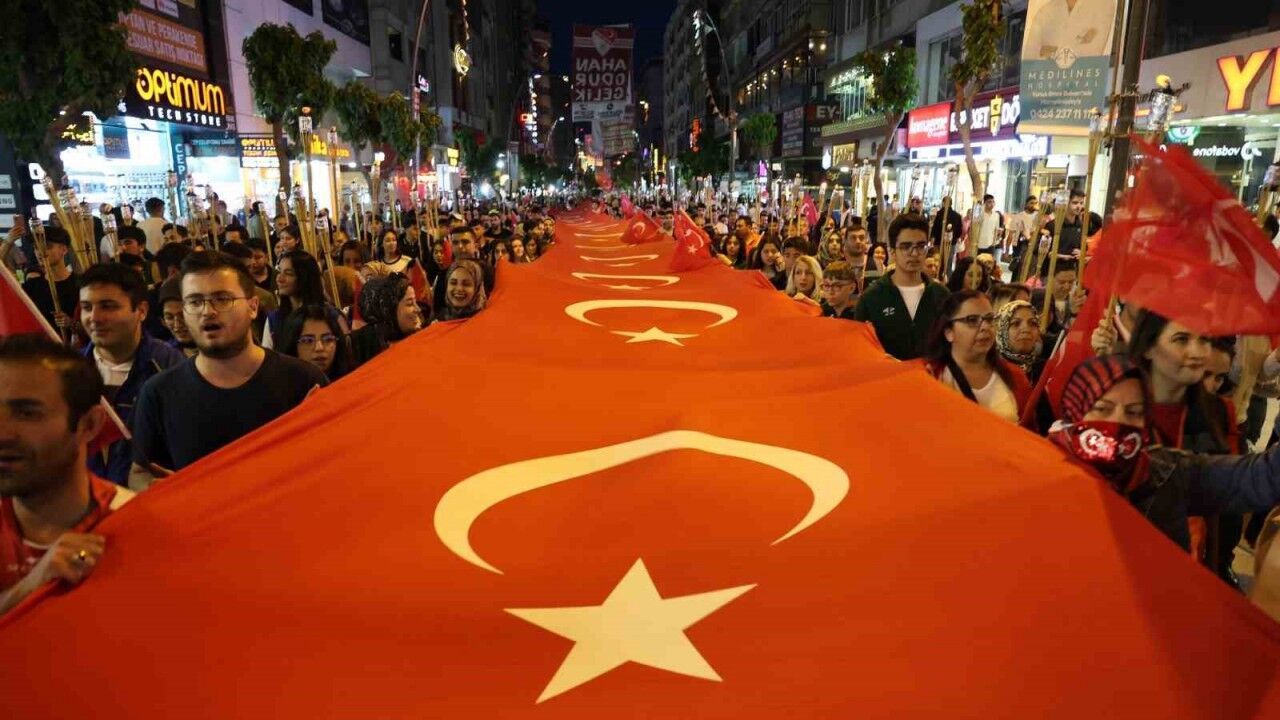 Elazığ’da 19 Mayıs Atatürk’ü Anma, Gençlik ve Spor Bayramı’nın 106. yıl dönümü fener alayı yürüyüşüyle kutlandı.