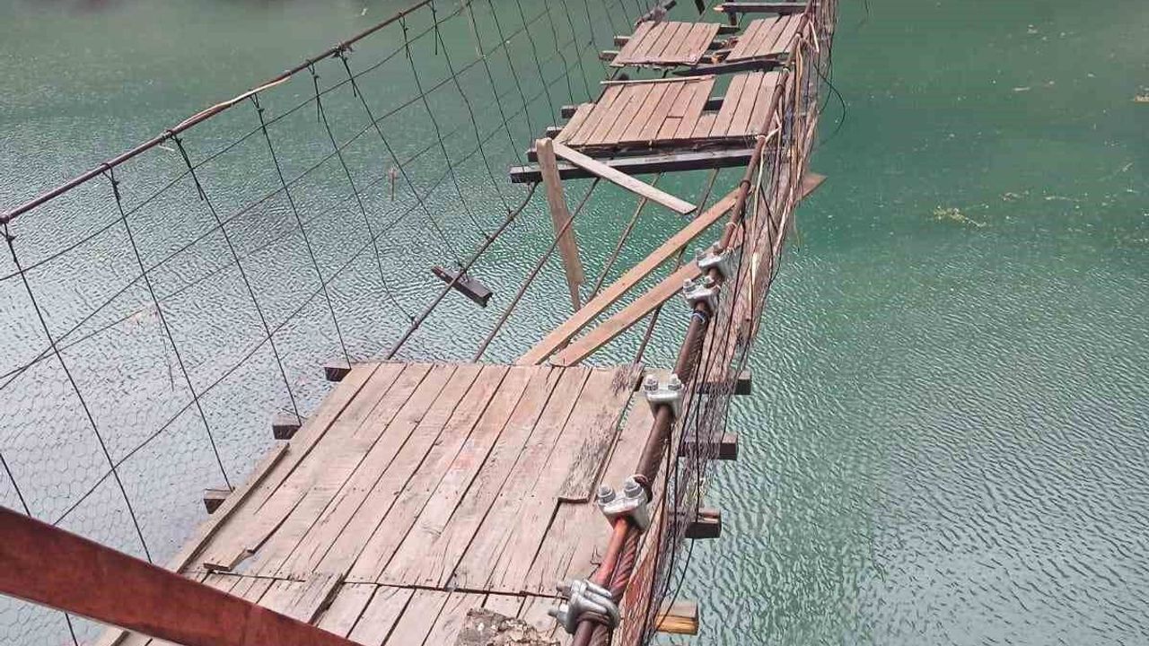 Elazığ’da etkili olan fırtına nedeniyle zarar göder asma köprü ye ulaşıma kapatıldı.