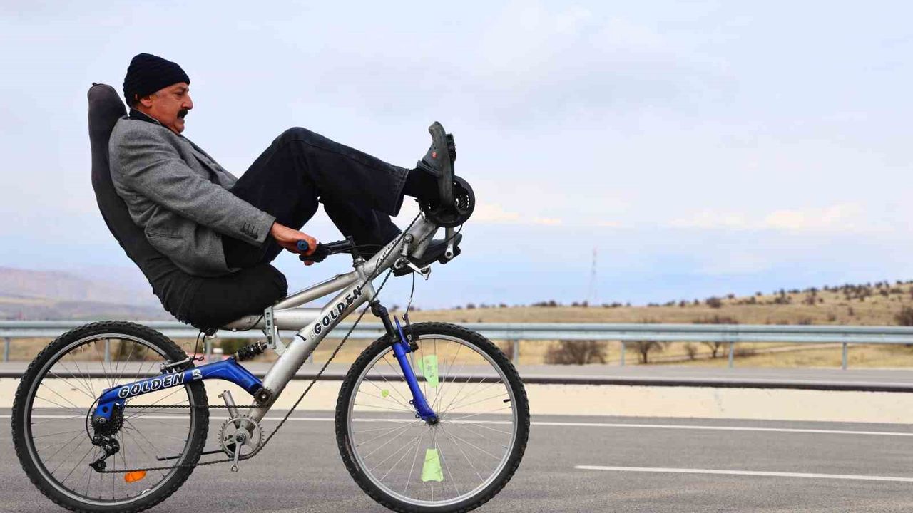 Elektrik-elektronik altyapısında yaptığı tasarımlara büyük katkı sağladığını söyleyen Züğürt, '26 sene Almanya'da kaldım. Türkiye'ye döndükten sonra 15 yıl boyunca bisiklet işi yaptım. Asıl mesleğim elektrik ve elektronik üzerinedir, ancak bu işten yeterli gelir elde edemediğim için bisiklet sektörüne yöneldim. Bisiklet işinde her gün paramı kazanıyordum. Özellikle kış aylarında, bisiklet işi olmadığında boş günlerimi bisikletlerle uğraşarak, denemeler yaparak geçiriyordum. O dönem bir yüksek bir bisiklet yaptım. Tamamen deneme amaçlıydı, 'Bu nasıl olacak?' diye merak ettim. Sonra fark ettim ki bu bisiklet insanı hiç yormuyor. Saatlerce sürsem bile sorun olmuyor. Düz yolda giderken hiçbir sıkıntı yaşamıyorum. Normal bir bisikletim de var, o da kaliteli ama onu sürdüğümde yarım saat sonra mutlaka dinlenme ihtiyacı hissediyorum. Bu yeni yaptığım bisiklet ise sanki adam boyu bir insan omuzlarında geziyormuş gibi rahat' dedi.