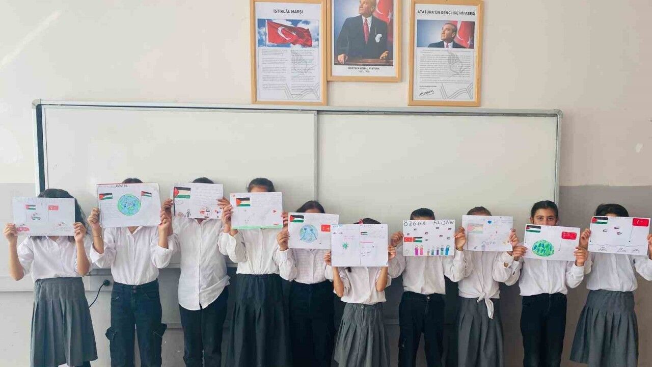 Elazığ’ın Kovancılar ve Arıcak ilçesinde öğrenciler Filistin’e destek verdi.