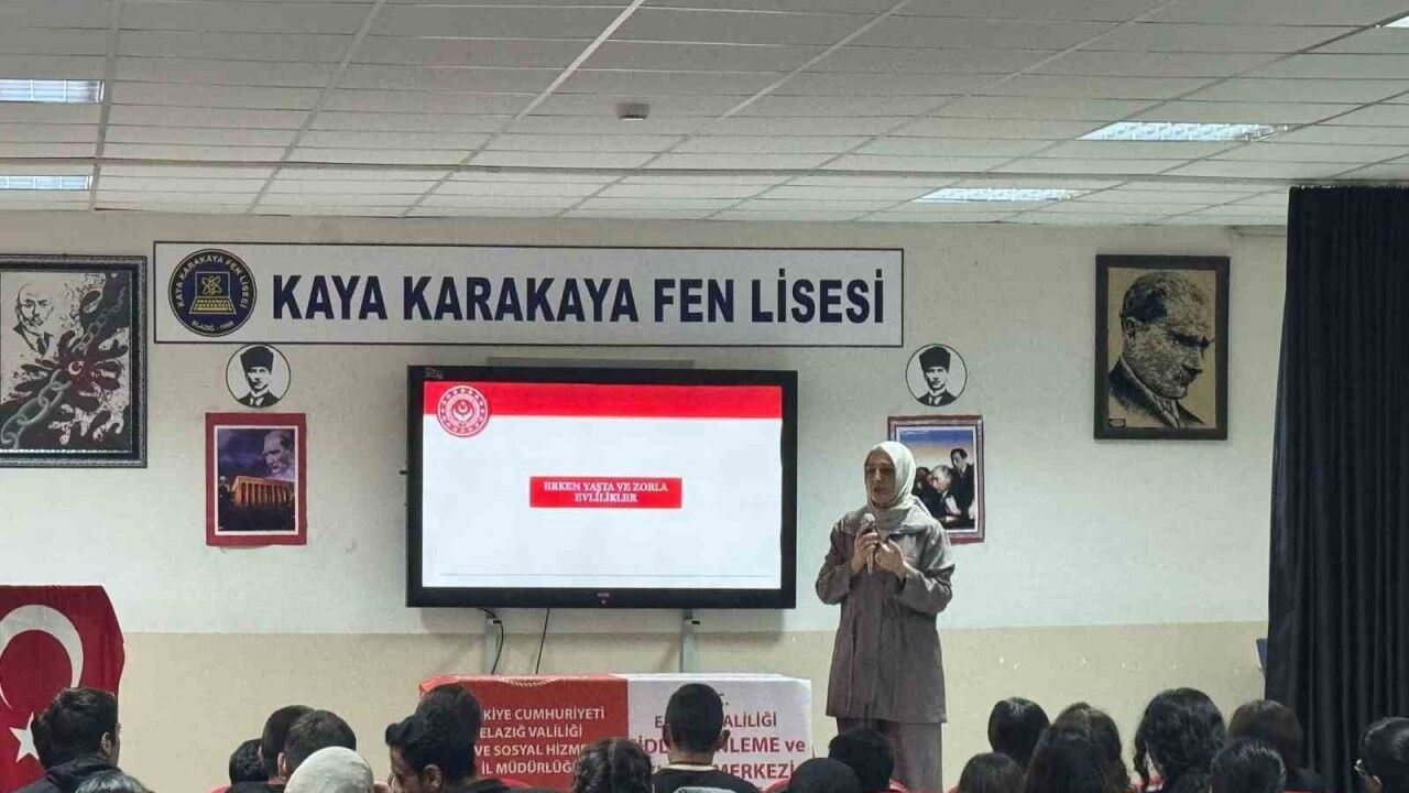 Elazığ Aile ve Sosyal Hizmetler İl Müdürlüğü tarafından öğrencilere, kadına yönelik şiddetle mücadele kapsamında eğitim verildi.