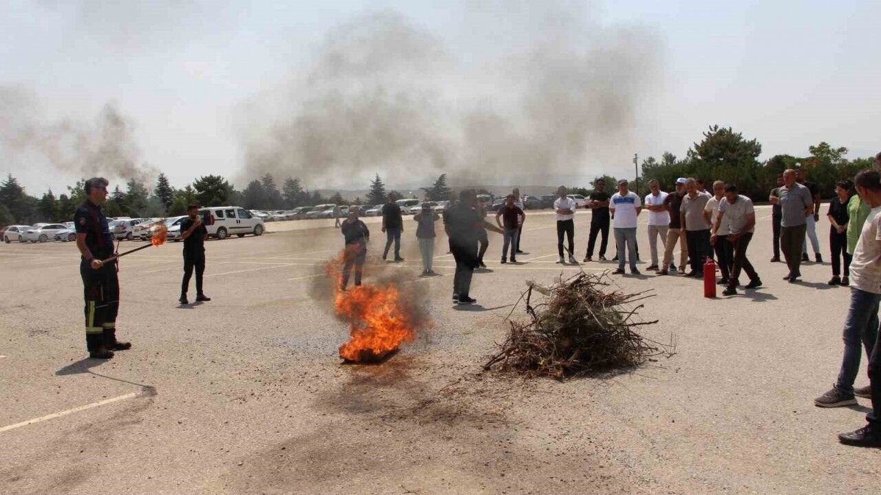 Tatbikat sonunda itfaiye ekipleri tarafından personele yangına ilk müdahale, yangın tüpü kullanımı ve alınacak tedbirler konusunda çeşitli bilgiler verildi.