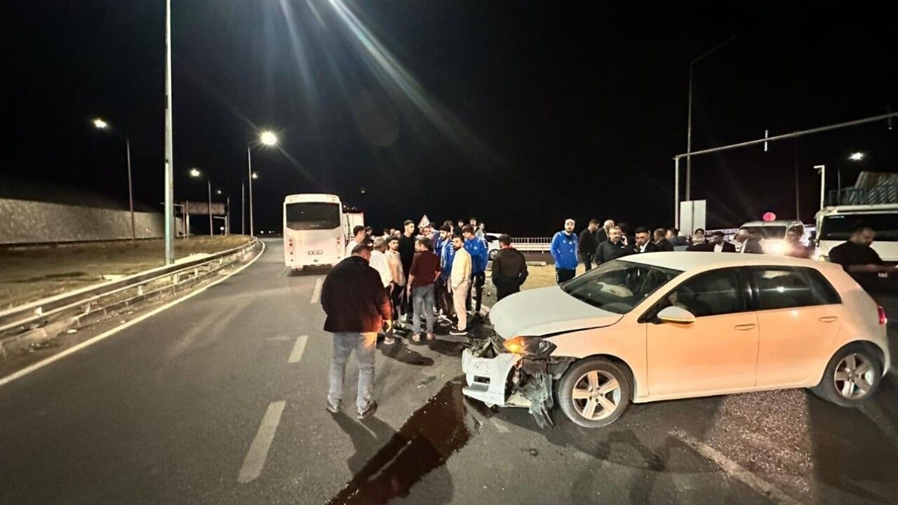 Hakkari-Van karayolunda Elazığspor oyuncularını taşıyan otobüs ile otomobilin çarpışması sunucu 1 kişi yaralandı.