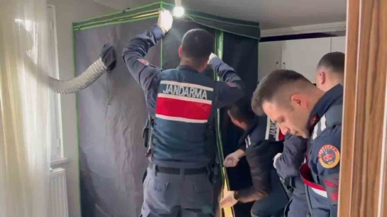Tekirdağ’da jandarma ekiplerinin son bir haftada gerçekleştirdiği uyuşturucu ve silah operasyonlarında 4 kişi tutuklanırken, bir evdeki bez kıyafet dolabının uyuşturucu serasına dönüştürülmesi dikkat çekti.