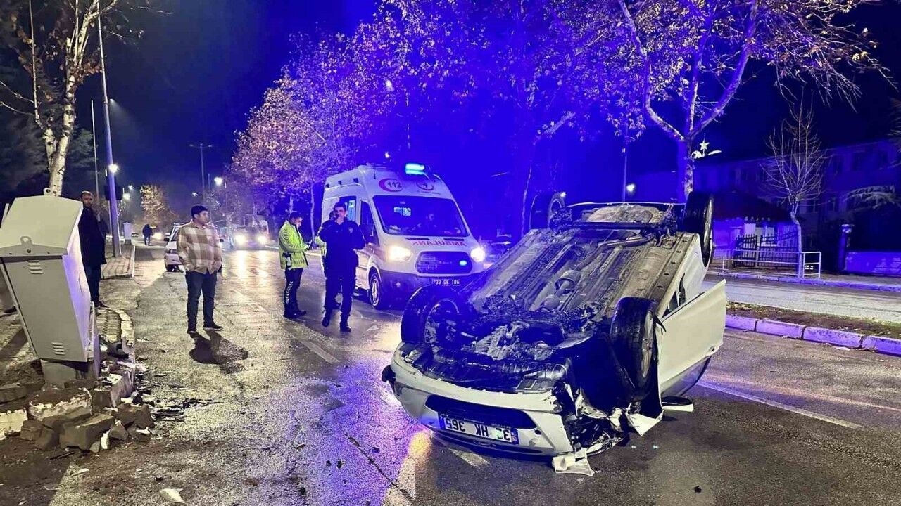 Isparta’da kontrolden çıkan otomobil elektrik panosuna çarparak ters döndü. Kazada sürücü hafif şekilde yaralandı.