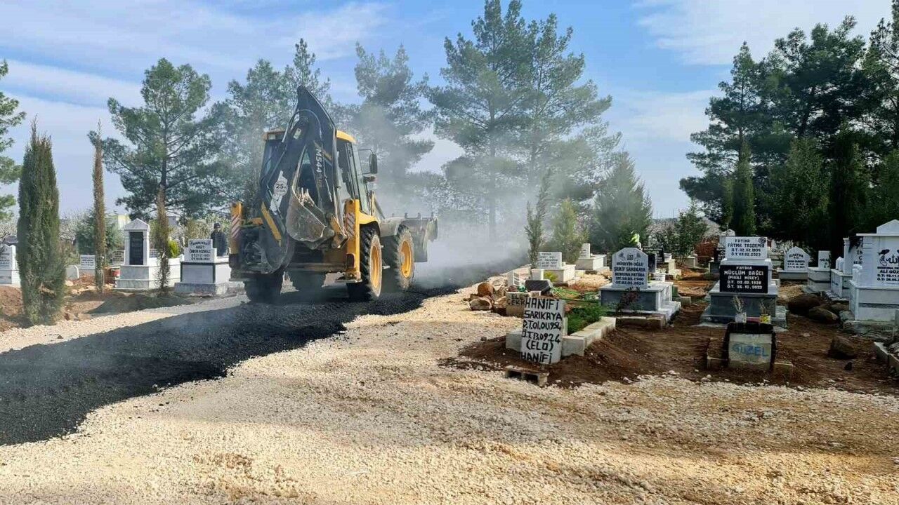 Gaziantep Büyükşehir Belediyesi, Araban ilçesi kırsal Elif Mahallesi’ndeki vatandaşların mezarlık ziyaretlerini daha temiz ve rahat bir ortamda gerçekleştirebilmeleri için mezarlık içindeki yolda sıcak asfalt çalışması gerçekleştirdi.