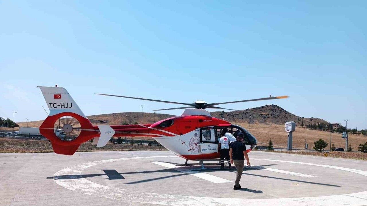 Kırıkkale’nin Karakeçili ilçesinde kıyma makinesine sağ elini kaptıran çocuk, hava ambulansıyla Ankara Bilkent Şehir Hastanesi’ne sevk edildi.