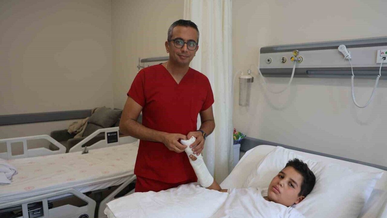Hatay’da elini üzüm sıkma makinesine sıkıştırarak 2 parmağı kopan 13 yaşındaki Melih Taş’ın kopan parmakları, Altınözü Devlet Hastanesi’nde görevli Uzman Dr. Mehmet Özer Dökmeci tarafından gerçekleştirilen başarılı ameliyatla tutturuldu.