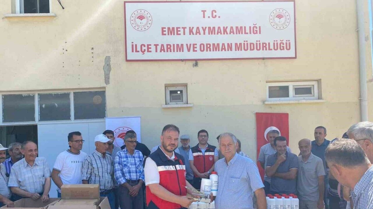 İlçedeki 52 arıcıya fümigasyon cihazı, oksalit asit ve formik asit dağıtımı Kütahya Hayvan Sağlığı Yetiştiriciliği ve Su Ürünleri Şube Müdürü İsmail Bilal Gürdal ve Emet İlçe Tarım ve Orman Müdürü Mehmet Coşkun tarafından yapıldı.