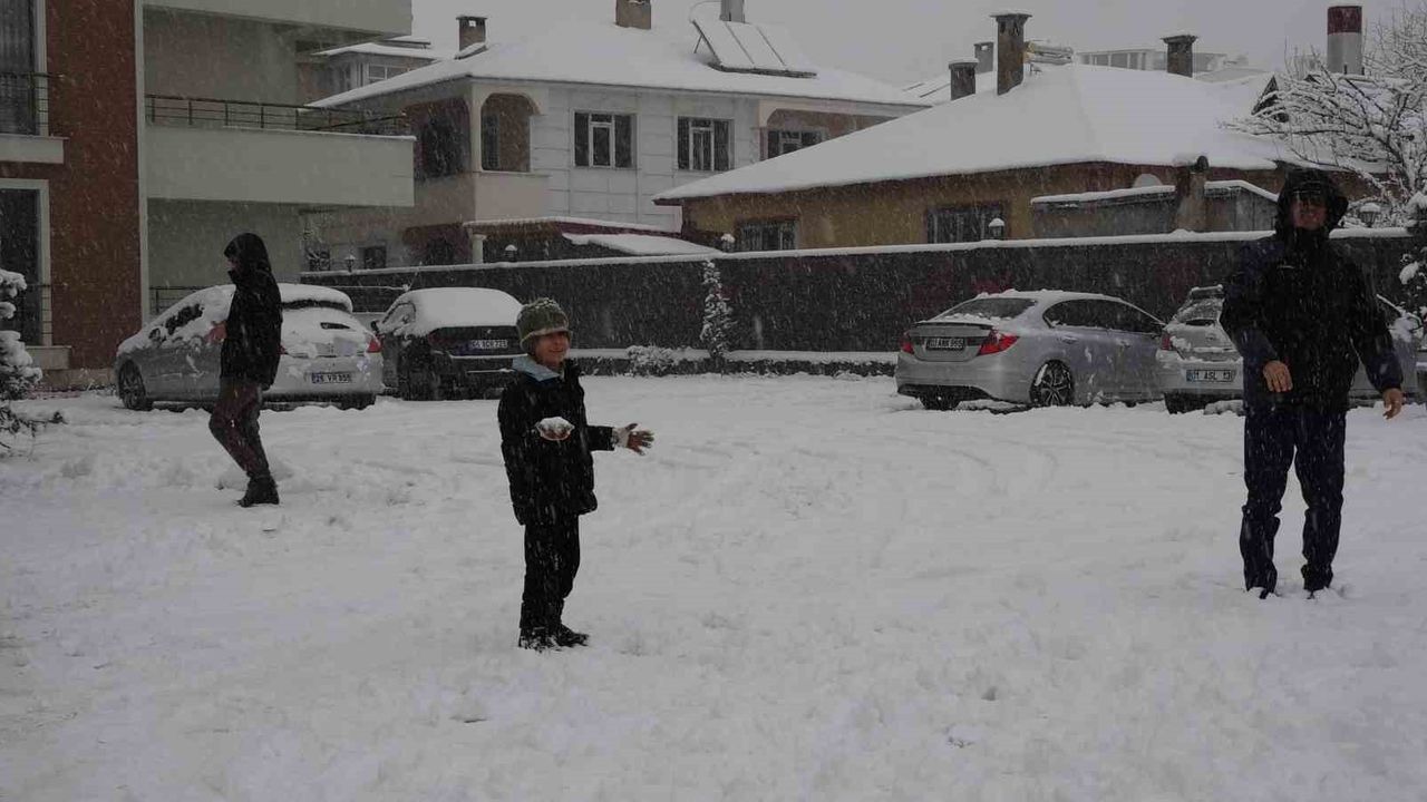 Kar yağışına çok sevindiğini belirten Ahmet Yiğit isimli vatandaş, 'Uzun zamandır kar yağmasını bekliyorduk. Hep birlikte kartopu savaşı oynadık kardan adam yaptık' dedi.
