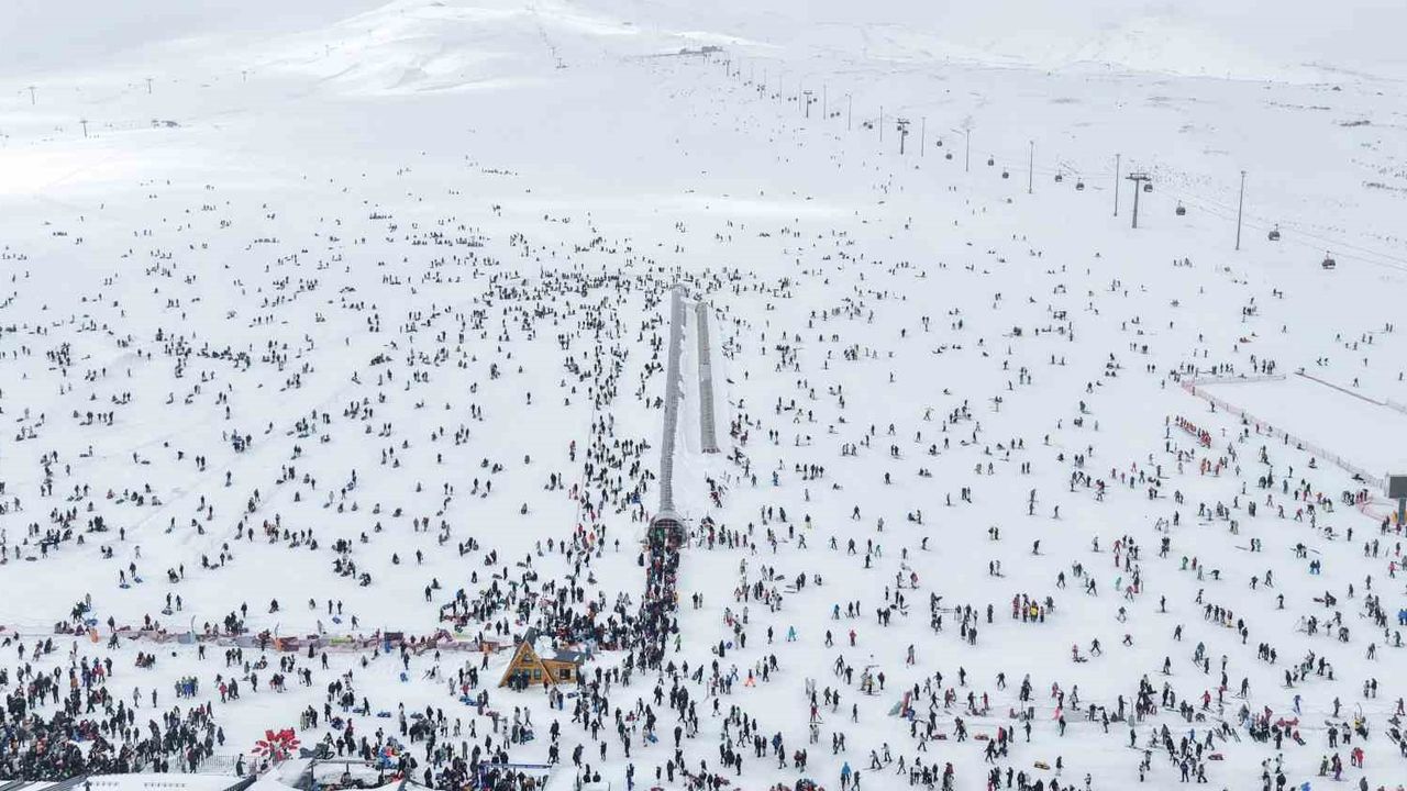 Sezonun tüm hızıyla devam ettiği Türkiye'nin önemli kış turizmi merkezlerinden Erciyes'te, hafta sonunu geçirmek isteyen vatandaşlar hem pistlerde hem de teleferiklerde yoğunluk oluşturdu. Kış aktiviteleri için Kayseri'yi tercih eden yerli ve yabancı turistler karın tadını çıkardı. Erciyes Kayak Merkezi'nde oluşan yoğunluk ise dron ile görüntülendi. Erciyes A.Ş. Yönetim Kurulu Başkanı Zafer Akşehirlioğlu, sezonun çok iyi geçtiğini ifade ederek, 'Keyifli Erciyes günleri devam ediyor. Tüm Türkiye'de etkili olan rüzgar Erciyes'te de biraz etkili oldu. Hızlı bir şekilde hemen aksiyon alıp gelen misafirlerimize kayak yaptırmaya devam ediyoruz. Bugün de bir hafta sonu ve müthiş kalabalık. Kayseri Büyükşehir Belediyemizin yapmış olduğu yatırımlarla Türkiye'nin en geniş, en modern kayak merkezi haline getirdiğimiz Erciyes Kayak Merkezi'nde misafirlerimizle aktivitelerle, festivallerle, kış sporlarıyla hep birlikte eğleniyoruz. Kayak hocalarımıza, işletmecilerimize, otellerimize teşekkür ediyorum. Muhteşem bir kış dönemi geçiriyoruz. Herkesi Erciyes'e davet ediyoruz' dedi.