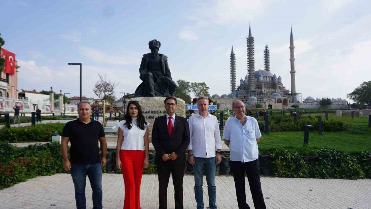 Dünya Mimarlık Günü kutlamaları çerçevesinde Edirne’deki Mimar Sinan Heykeli önünde bir araya gelen TMMOB Mimarlar Odası Edirne Temsilciliği Yönetim Kurulu üyeleri, günün anısına çelenk sunarak basın açıklaması yaptı.