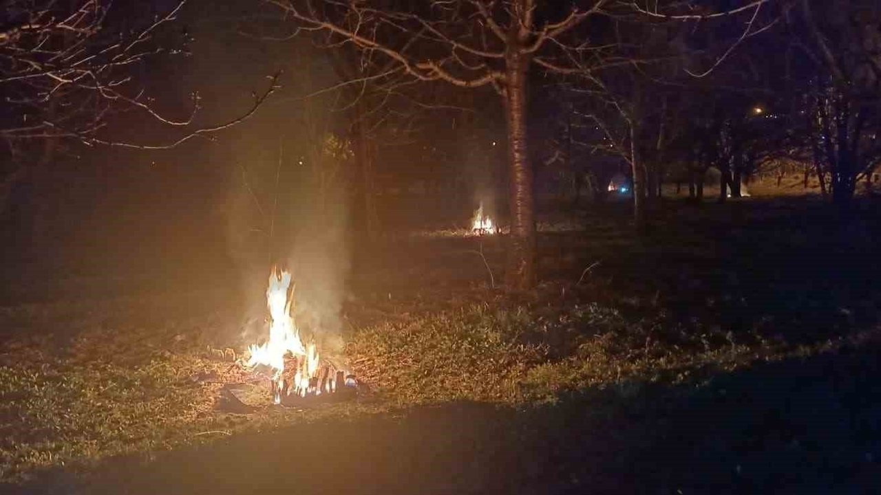 Oluşturulan ısı ve duman sayesinde donun etkisini azaltmayı amaçlayan çiftçiler, sabaha kadar süren nöbetle ürün kaybını en aza indirmeye çalıştı.