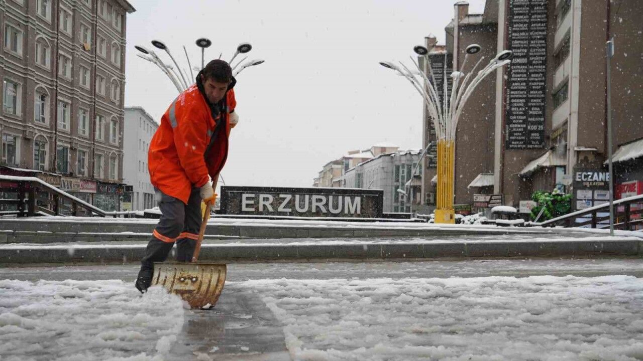Erzurum’da vatandaşlar güne kar yağışı ve beyaz örtü ile uyandı.
