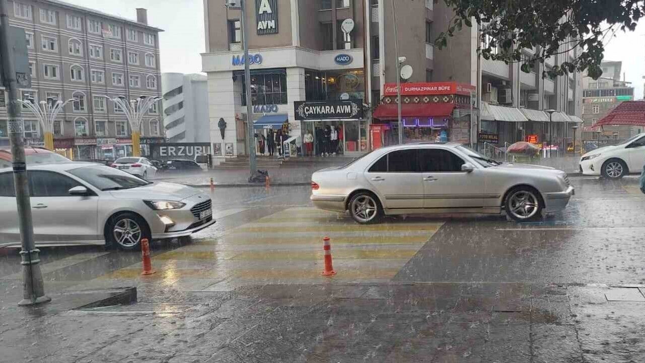 Erzurum’da akşam saatlerinde etkili olan sağanak yağış hayatı olumsuz olarak etkiledi.