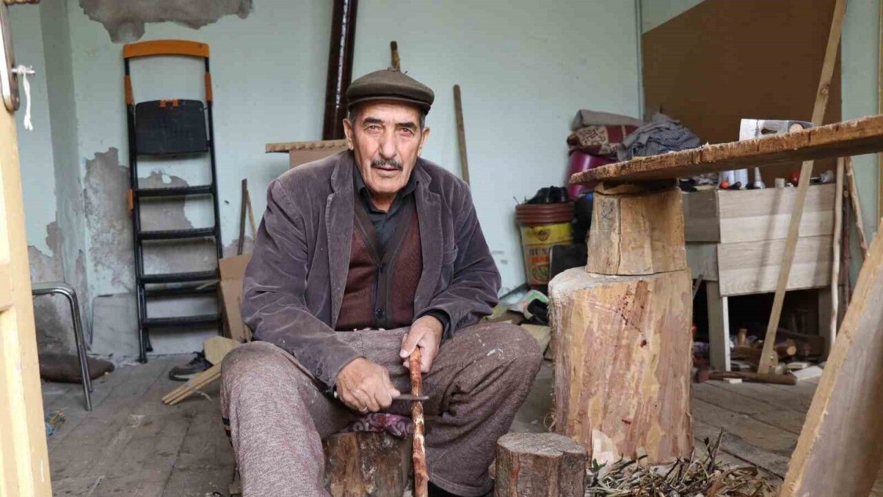 Erzurum’un Oltu ilçesi Şehitler Mahallesi’nde yaşayan evli ve 6 çocuk babası 79 yaşındaki Hüsamettin Aras, atık ağaç parçalarını değerlendirerek yaptığı objelerle geçimini sağlamaya çalışıyor.