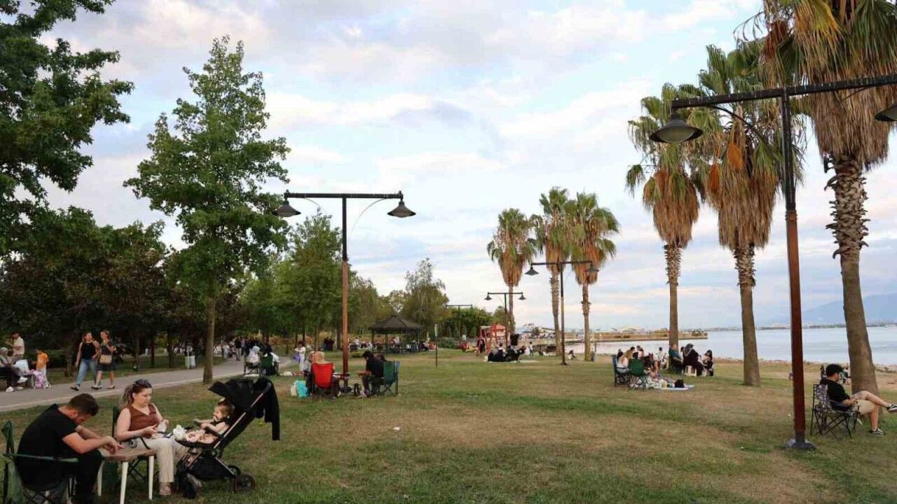 Akşam saatlerinde sandalyelerini ve masalarını alarak parka gelen çok sayıda vatandaş, yanlarında getirdikleri yiyecek ve içeceklerle vakit geçiriyor. Aileler ve arkadaş grupları, parkın sunduğu yeşil ve maviyle iç içe atmosferde sohbet etme imkanı buluyor.