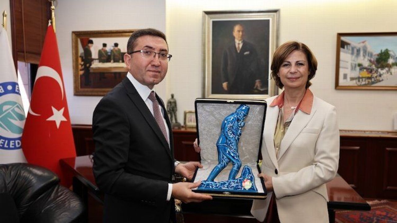 Eskişehir Baro Başkanı Av. Mustafa Elagöz ve yönetim kurulu üyeleri, Eskişehir Büyükşehir Belediye Başkanı Av. Ayşe Ünlüce’ye tebrik ziyaretinde bulunarak yeni görevinde başarılar dilediler.ESKİŞEHİR (İGFA) - Eskişehir Baro Başkanı Av. Mustafa Elagöz ve yönetim kurulu üyeleri ile avukatlar, Eskişehir’in yeni Büyükşehir Belediye Başkanı Av. Ayşe Ünlüce’yi makamında ziyaret etti.