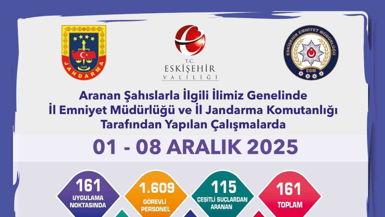 Eskişehir’de polis ve jandarmanın bin 609 görevli personelle yaptığı çalışmalarda toplamda 161 aranan şahıs yakalandı.