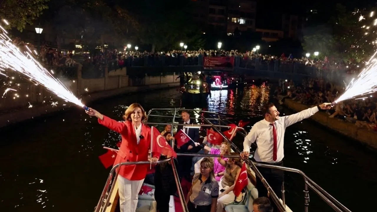 Etkinlikler kapsamında Porsuk Çayı’nda düzenlenen Fener Alayı’na, Eskişehirliler büyük ilgi gösterdi. Porsuk Çayı üzerindeki köprülerde ve kıyılarda yerini alan binlerce Eskişehirli büyük coşkuya ortak oldu.