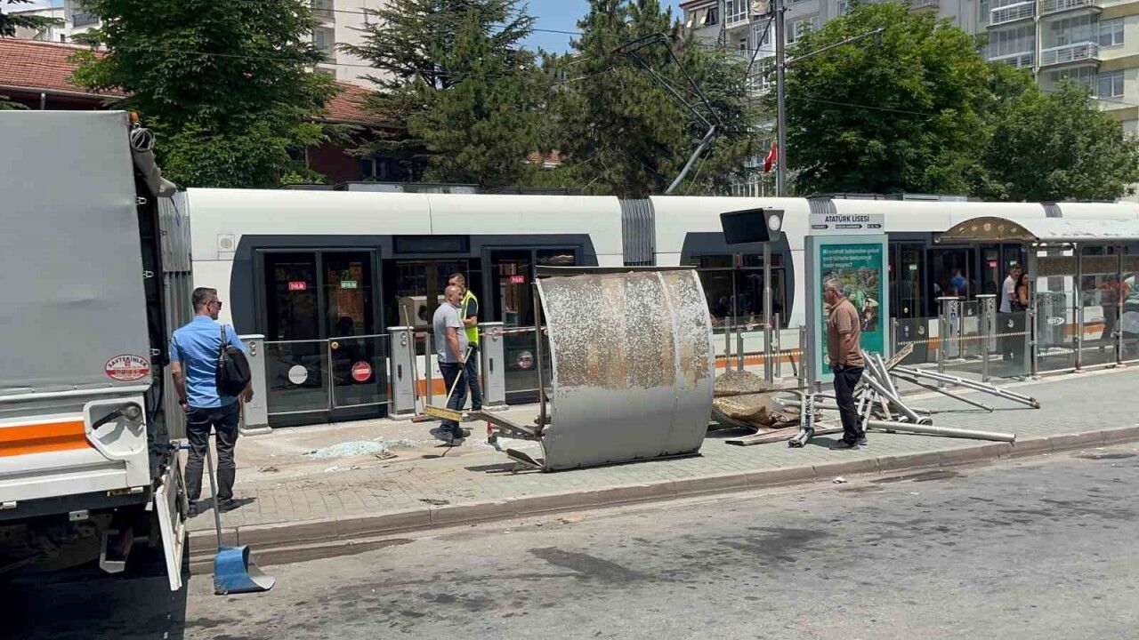 Tramvay seferleri aksadı, durak kullanılamaz hale geldi