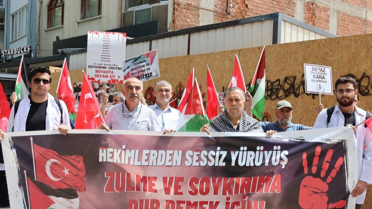 Eskişehir Adalar mevkiinde meydana gelen sessiz yürüyüş. hekim ve sivil kaybına dikkat çekti. Yürüyüşte, ‘Hekimlerden sessiz yürüyüş: Zulme ve soykırıma dur demek İçin!’ yazılı pankartlar taşınarak mesaj verildi. Yürüyüşe katılanlar, Filistin bayrakları ve üzerinde ‘Doctors Stand With Palestine’ (Doktorlar Filistin’in Yanında) yazan pankartlarla Filistin halkına desteklerini dile getirdi. Bazı sağlık çalışanlarının beyaz önlüklerine kırmızı el izleri basarak, sağlık hizmeti verirken şiddete maruz kalan meslektaşlarına farkındalık oluşturmaya çalıştığı görüldü. Eylemciler tarafından taşınan pankartlarda, ‘Terörün örgütüne de devletine de karşıyız’ ve ‘Beyaz önlüklerimiz kana bulaşmasın’ gibi ifadelerle hem terörün her türlüsüne karşı oldukları hem de sağlık çalışanlarının güvenliğinin sağlanması gerektiği vurgulandı. Gerçekleşen sessiz yürüyüşte yaklaşık 20 ila 25 Tıp Fakültesi öğrencisi Filistin’deki çatışmalarda yaşanan sivil kayıplara ve şiddetin sağlık çalışanları üzerindeki yıkıcı etkilerine dikkat çekti.