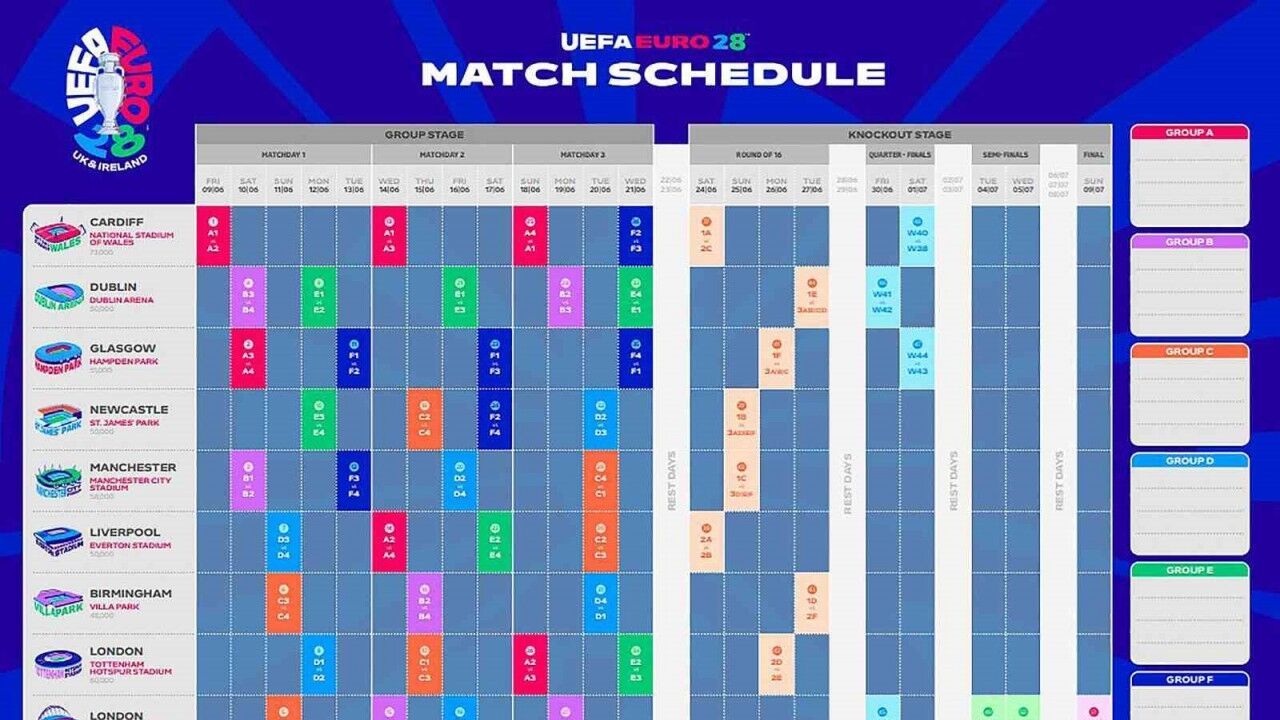 Aynı zamanda turnuvanın açılış ve kapanış maçlarının nerede oynanacağı da belli oldu. 9 Haziran 2028’deki EURO 2028’in açılış mücadelesine Cardiff’te bulunan Galler Ulusal Stadı’nın ev sahipliği yapacak. Final karşılaşması ise 9 Temmuz 2028’de Londra’daki Wembley Stadı’nda oynanacak.