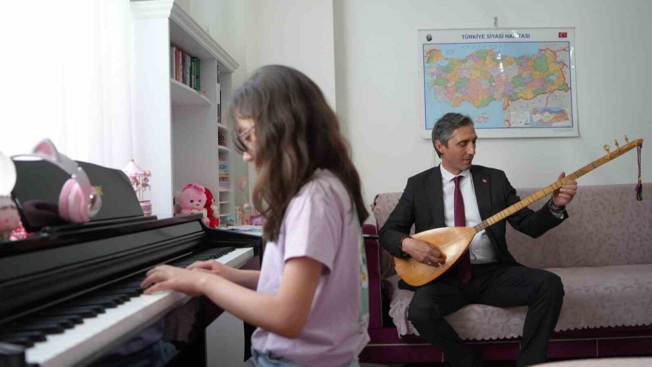 Bayburt’ta kalp rahatsızlığı nedeniyle evde öğrenim gören 10 yaşındaki Nursima Topsakal’a İl Milli Eğitim Müdürü Ömer Faruk Kahraman unutamayacağı bir sürpriz yaptı. Nursima’dan gelen isteği geri çevirmeyen Kahraman, evde ziyaretine geldiği minik Nursima’nın piyano resitaline bağlama çalarak eşlik etti.