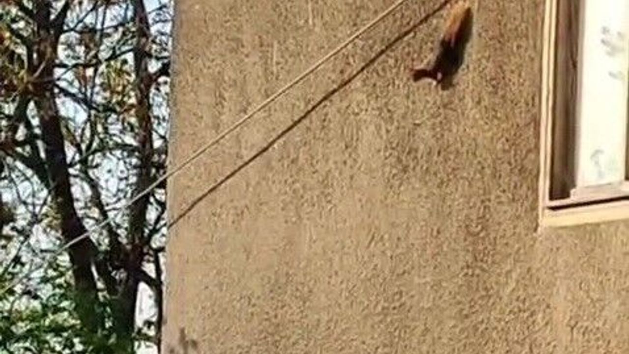 Görüntülerde, sincapların evin duvarında çevik hareketlerle yukarıya doğru tırmandığı ve bir süre sonra gözden kaybolduğu görülüyor.
