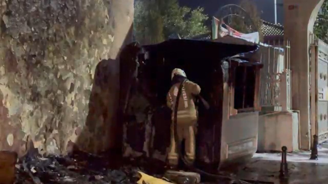 İstanbul Fatih’te cami dışındaki güvenlik kulübesi alev alev yandı.