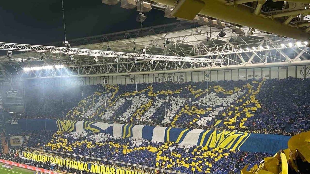 Trendyol Süper Lig’in 14. haftasında Fenerbahçe, sahasında Galatasaray ile karşılaşıyor. Sarı-lacivertli taraftarlar erken saatlerde stat çevresine gelirken, daha sonra tribünlerdeki yerlerini aldı. Çalınan marşlar ve tezahüratlarla derbi atmosferini yaşayan taraftarlar seremonide de hazırlanan koreografi ve pankartları açtılar.
